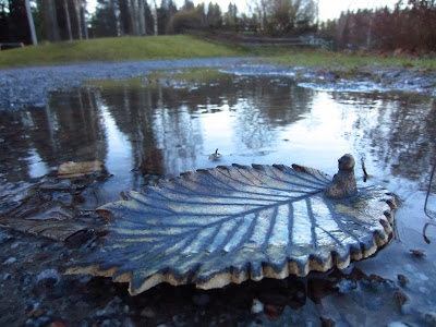 Yhdellä kerralla kaverini oli tuonut mukanaan syksyn lehtiä. Lehden, ehkä jalavasta peräisin olevan, avulla tein kynttiläalusen. Lehden ruoti oli aika vahva ja sillä sai saveen todella herkän kuvioinnin. Reunat "leikkasin" kirurginveitsellä.